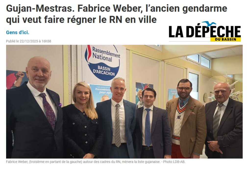 Après la ville du Teich il y a quelques jours, la cité gujanaise est aussi devenue officiellement une terre de conquête pour le Rassemblement national (RN). Dans une petite salle située à deux pas de la mairie, l’ancien gendarme, Fabrice Weber, père de famille de 53 ans et désormais responsable commercial dans l’aéronautique, a pris la parole pour dévoiler sa candidature à la tête de la commune.